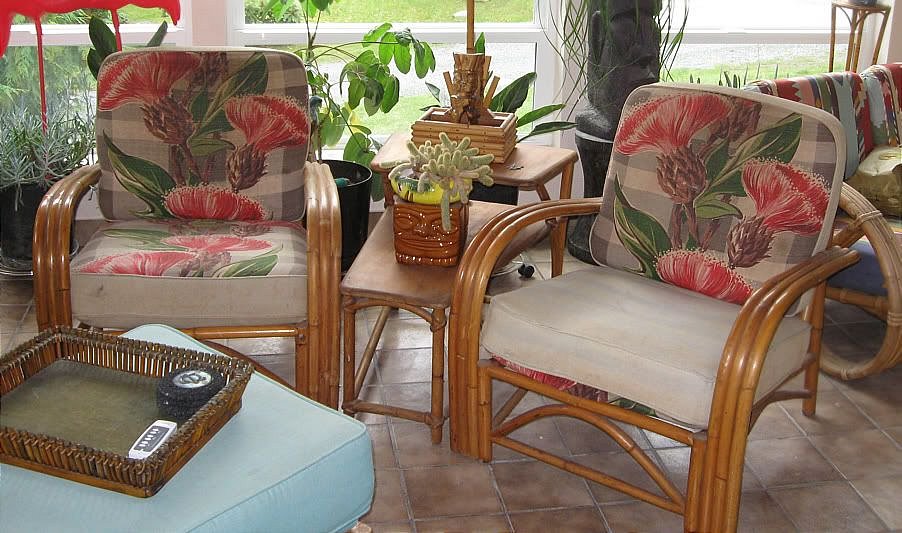 The 8 sided aquarium and my first rattan purchase. Unfortunately it leaks so it will hold my redware Hawiian figures. A junk store find I got for $75