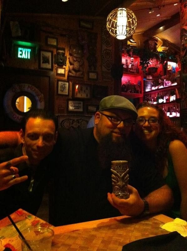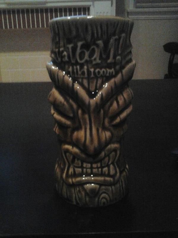 So I went to Amsterdam last month and made my way to Den Hague for a visit to VaVoom Tiki Room. Crushing my hopes of the only souviner I really wanted, the bartender told me that their mugs were stuck in customs. I left empty handed... I got a hold of Holden at Tiki Farm (Who made the mugs) and he said they should have been there months ago. Odd right? Well, figured out that they were holding them back for their big one year anniversary party. I decided to get in contact with the owner and he was super cool. One of his bartenders, Mike, was coming to LA in September and he said he would send a mug with him. I can't tell you how stoked I was to hear that news! Long story short, I finally meet Mike and his woman Yo at Trader Sam's in Anaheim tonight and guess who now has in his hands one of only five to be released in the world so far? THIS GUY!