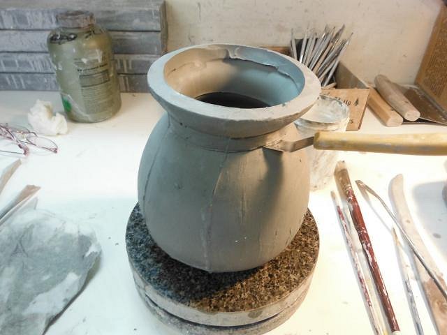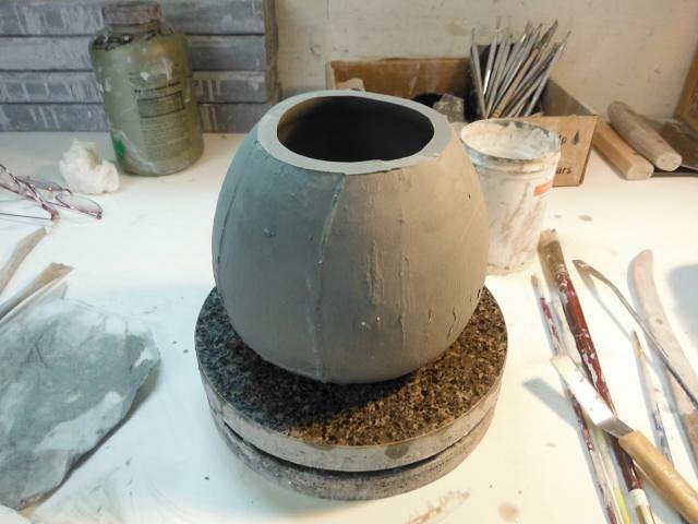 Tiki Shark Art thank you so much for the compliments. It was really fun to meet you and to see the excitement your visit generated at Marketplace. Please say hi to Konacat for us. We enjoyed a day with him years ago. Now as little lost tiki said, "get back to painting". We are all waiting for the next step. ================================================================================ MaukaHale Dan's written you a nice long letter that should go into the mail tomorrow along with some garage band music. Keep an eye out for it. He loved the music you sent, thank you so much. hang10tiki not only that but he parks well too.What a great community we have with our love of tiki. I smile all day long because of the people I've met at all these wonderful events. ================================================================================ When Dan retired from work one of his gifts was a Tommy Bahama shirt. He tore a hole at the top of the pocket. and the outside until it was good enough that he'll still be able to wear it and the hole won't get bigger. ================================================================================== Back to the clay. Bob's, bowls, War Gods and a torch. Not bad for a pouring day. I cleaned all the mold lines off of them. This bowl will be for one of the cannibal bowls for the Wish List. I've poured a few so that a choice can be made. With the top edge or without it. The bowl can be cut at any height. Something to think about. The bags are working well at holding in the water. If only I'd found them sooner. Four torches. Many other tikis. This is all part of the set up for Wish List #4. I'm looking forward to getting started with the custom work. There just are not enough hours in each day. Thank you all for the visit. Wendy [ Edited by: danlovestikis 2013-12-12 08:04 ] |