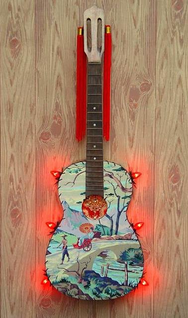 Tiki Central / Tiki Marketplace / eBay: "Secret of the Golden Dragon" Guitar Wall Shrine by Canadian Artist Bill Blair