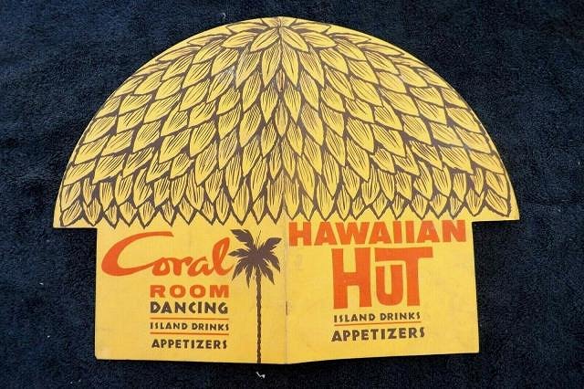 Here is a nice little die-cut drink menu from the Hawaii Hut from ebay.