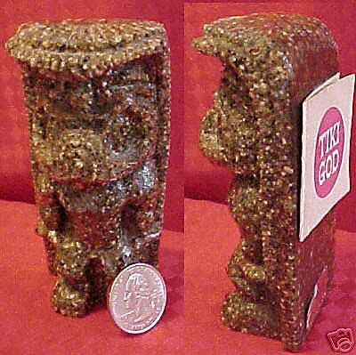 Cross posted from another thread, here's a photo of that same HIP tiki, along with some of the other resin-based compositions or finishes, less common than the lava or hapa wood ones.