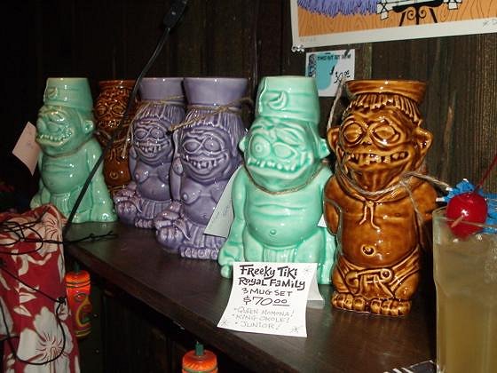 Thanks to all who came through the wet, cold weather to the Tonga Hut for the Art show/ mug launch. It was a smaller turnout this time, but still a nice crowd. Unfortunately, the weather didn't allow the wrestling match to take place in the parking lot behind the Tonga Hut, but GROG think it was probably for the best. Atomikitty would've probably hurt some people pretty badly, and we wouldn't want to put the rest of the artists out-of-commission. And speaking of artists, thanks Holden Bamboo Ben, Atomikitty, Bosko, Diablo, Señor Calamar, Tiki Ice, and Derek for the great art and mugs you brought for the show.And thanks DJ Lee for spinnin some mad tunes. Thank you to Ana and Jeremy and the Tonga Hut bartenders for putting up with this crazy tiki crowd. And, thank you Atomikitty for helping to co-organize this event and putting up with all of our crazy shennanigans. And a big apology to Hanford for this THREAD FROM HELL! GROG hope everybody had a good time, and wish everybody Happy Holidays. [ Edited by: GROG 2006-12-18 22:57 ] |