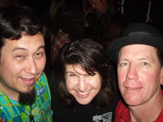 Sorry for the delayed posting. I've had another truly messed-up thread to attend to. The show was a blast! Finally got to meet Chongolio and Polynesiac! YAY! I even got to see my pal from high school and mad hillbilly western swing guitarist/drummer, Dave Stuckey of the Dave & Deke Combo, Bonebreak Syncopaters and The Lucky Stars. Even though I was stuck behind a table most of the night, here are some shots I managed to get. Sorry Grog, no art. Enjoy! Thanks to everyone who organized and to everyone who came out! Yeeeehaw!!~!!! |