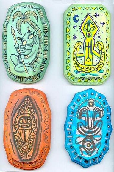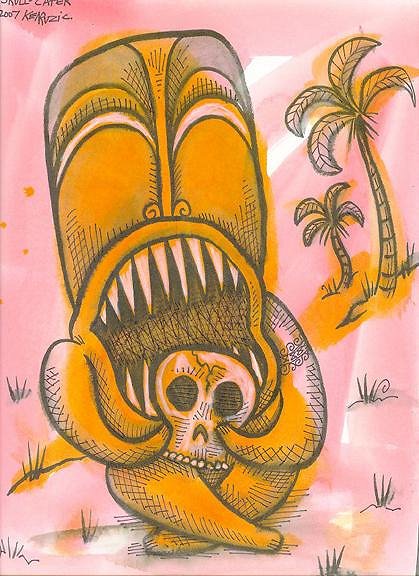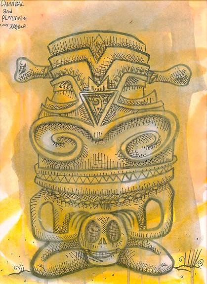Been shooting everything hi-rez and filing it up! I got over 150 tiki paintings documented-maybe closer to 200...book someday hopefully! And that kid's book that always gets kicked out of the way and never gets done...Glad i could charge up your old energy banks buddy! Lovin to death that new skull-eyed cannibal tiki! See what i mean about the sketchbook? You never know when that chill goes up your spine and your left eye get's a jumpin and you get that flash ,that peek of insight and inspiration...you gotta have the tools at hand to record it or it gets stuck on a post-it note or envelope in the car! Mapping the moods...well I can go from nice kind fellow to crotchety old geezer in 20 minutes flat....it's the cyclothymia I guess...
