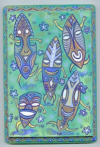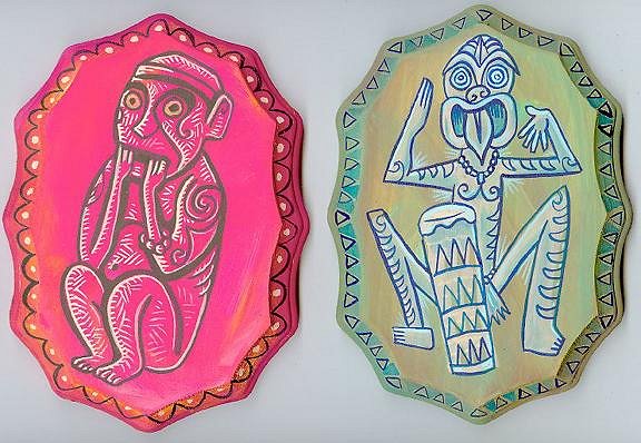 These are the same shape as "the Cannibal Idol"-IN FACT...bought 'em all at the Swap Meet near GoldenWest College..They're serving trays(or paintings) that fit into each other!
