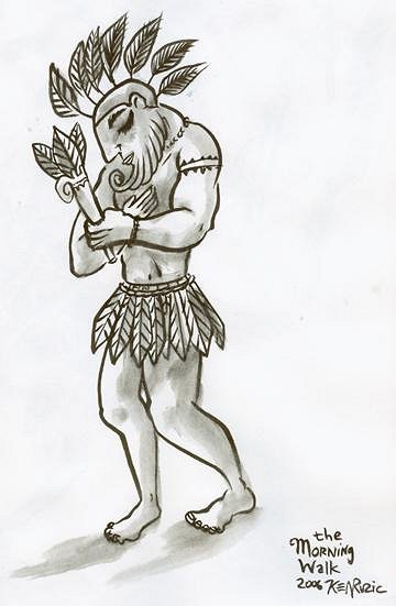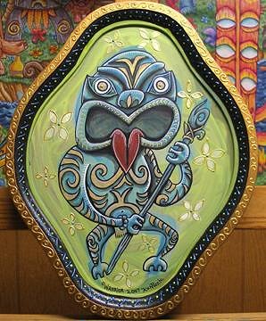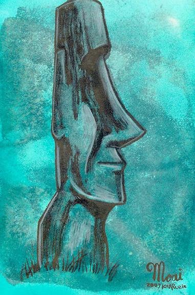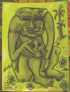 Man! I hate the fact that 95% of my sketchbooks are at the studio (I usually keep the recent and second to recent ones at the home studio here!)BECAUSE I had this"Maori Rocker" like this guy,a lil' shorter,with a full-on AXE! he was Rockin in the Free World! I'll dig that up next week to show y'all! Hey Paipo! You can have the Brain now! It's buggin me,reminding me that i gotta "blend-in" or "pipe-down" or "act normal"...Take it away before ALL the braincells are gone! (Not responsible for slight and /or major defects) The KIZZ moko would be super cool! You should get one! Moais would look schweet with those on as well! Kinda on the subject, the Melvins put out some solo albums with covers based on the KIZZ solo covers a while back! Buzzo's cover is the best, as he took the Gene Simmons cover...Anyways! Also off the subject...finally finished the "Autobiography of Benvenuto Cellini, this Renaissance sculpter/carver/artisan...His story is so incredible...intrigue...pissin off Dukes,Princes,Kings,and Popes....