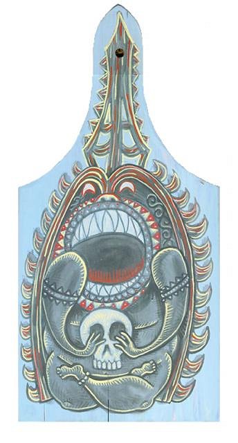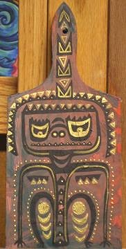 Let's start with a Cannibal Paddle...gouache on gessoed wood paddle!