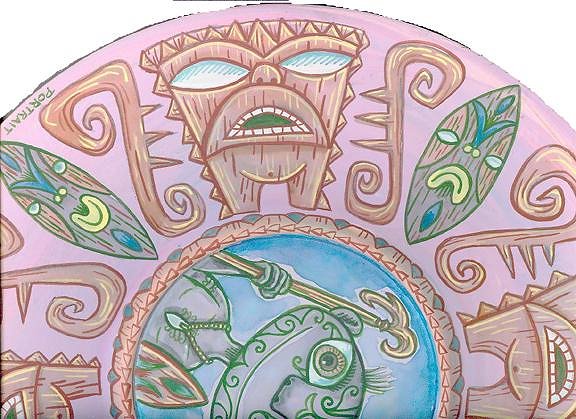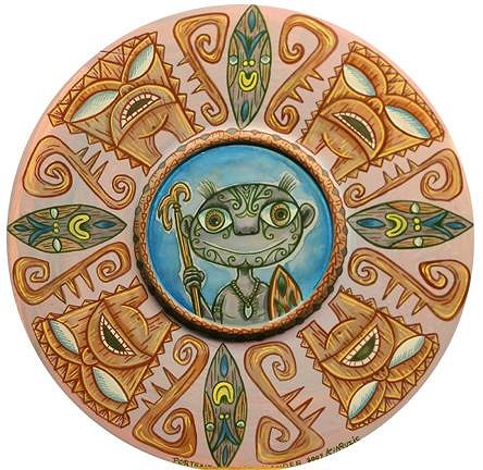 "Portrait of an Islander" Gouache on gessoed Wooden Serving Plate..