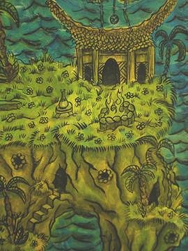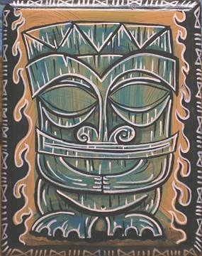 I think i've been hardcore into the tiki paintings for almost 3 years....I've been doing Tiki art since about '89, but most of that stuff is on tees for Rusty/HIC/etc..I finally started doing a tiki painting here and there starting around 98 or so....when i first wanted to do "the little Lost Tiki" Childrens Book,which will probably never get done! too busy!) As for total paintings, i would say around 1000 since i began...Maybe closer to 850....My first few years, I kept awful records