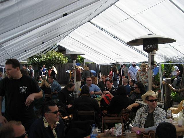 Wow! What a party! Too bad I forgot to drink water and eat something between the mai tais! I paid for that mistake all morning! I actually had friends drive me and my car home! Seems I missed all the indoor fun, but I had a great time hanging out back! Thanks to Martin, Mike, and Mano (I think I'll call you the Three M-igos), and the staff and volunteers for a fun day and a great first year! Here's to many, many more! Here are my pics of the day. The line to get in and to get the limited edition mug :down: TikiCleen and I sporting our original Paipo pendants :down: The Jab, Mrs. Midnite, and Jab's friend :down: The Jab and his friend, whose name I don't know :down: Martiki, the host with the most, and Notch, mug designer extraordinaire :down: The ultimate hostess, Haole'akamai :down: I don't know who this is, but I love her dress and little coconut bag, so I took a pic :down: Midnite and The Jab discuss the finer points of Mai Tais from a dispenser :down: The party in full swing under the tent out back :down: FI regulars Chris and Maria enjoying the festivities :down: SoccerTiki double fists his $6 mai tais :down: Will the Thrill, Chongolio, and CongaDenise are all smiles :down: The Midnites enjoy the mai tai pouring tips :down: DrunkenHat points out the high price of Chongolio's airfare to Hawaii :down: And Chongolio decides to drink his worries away :down: Notch, Stephanie, and TikiDiablo sit among the Jungle Trader tikis :down: Jungle Trader shows off his latest acquisition from New Zealand :down: |