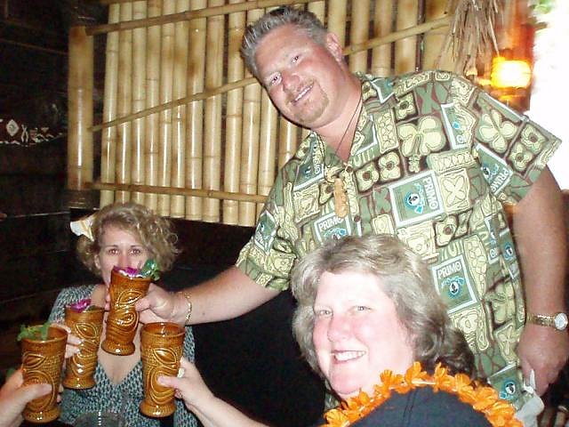 Wow! What a party! Too bad I forgot to drink water and eat something between the mai tais! I paid for that mistake all morning! I actually had friends drive me and my car home! Seems I missed all the indoor fun, but I had a great time hanging out back! Thanks to Martin, Mike, and Mano (I think I'll call you the Three M-igos), and the staff and volunteers for a fun day and a great first year! Here's to many, many more! Here are my pics of the day. The line to get in and to get the limited edition mug :down: TikiCleen and I sporting our original Paipo pendants :down: The Jab, Mrs. Midnite, and Jab's friend :down: The Jab and his friend, whose name I don't know :down: Martiki, the host with the most, and Notch, mug designer extraordinaire :down: The ultimate hostess, Haole'akamai :down: I don't know who this is, but I love her dress and little coconut bag, so I took a pic :down: Midnite and The Jab discuss the finer points of Mai Tais from a dispenser :down: The party in full swing under the tent out back :down: FI regulars Chris and Maria enjoying the festivities :down: SoccerTiki double fists his $6 mai tais :down: Will the Thrill, Chongolio, and CongaDenise are all smiles :down: The Midnites enjoy the mai tai pouring tips :down: DrunkenHat points out the high price of Chongolio's airfare to Hawaii :down: And Chongolio decides to drink his worries away :down: Notch, Stephanie, and TikiDiablo sit among the Jungle Trader tikis :down: Jungle Trader shows off his latest acquisition from New Zealand :down: |