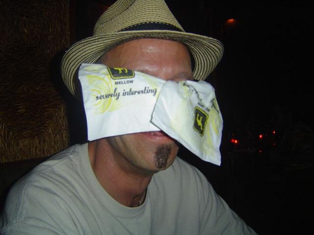 Okay, as promised, here are the piccies I took! These two pics are ripe for photoshopping! :o Boris was REALLY diggin his umbrella... Grog is a cool mutha! A competition of looks! Sabu! Grog......again! Me! Grog took this one! I think everyone wore Squid's hat! AND LASTLY! Here is Squid...averting his eyes.....from a dancing maniac! LOL! I had a blast! |