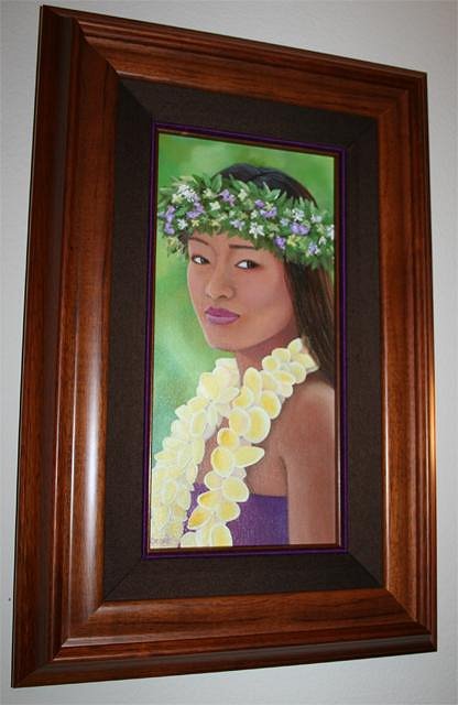 Aloha, I wanted to share my wahine art that I painted and recently had framed. It's an 8" x 16" oil on canvas and coated with a satin gloss and framed in koa wood entitled "Sweet Leilani". This is actually my first portrait painting and I am very happy with the results and have it hanging in my living room. Mahalo for looking!