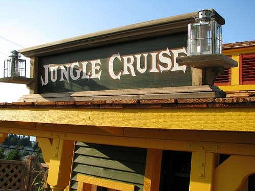 Here are two Jungle Cruise signs that I made for my backyard. These were actually pretty easy to make. Here's what I did: Flickr has an enormous amount of Disneyland photos posted by its users. There's a ton of hi-res images of various signs that you can download. I found photo images of both of these signs, printed them on my 11x17 printer and attached to thin plywood using adhesive spray. I then coated the sign with several layers of clear shalack spray. Once that dried I added a coat of semi-gloss polyurethane spray. These make great conversation pieces to anyone's Adventureland themed backyard or home.
