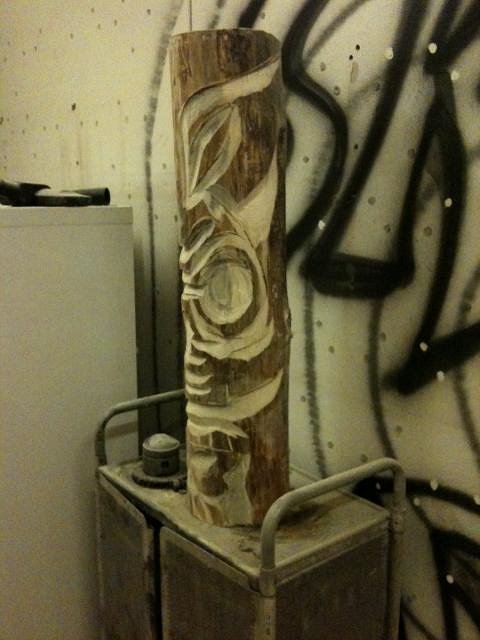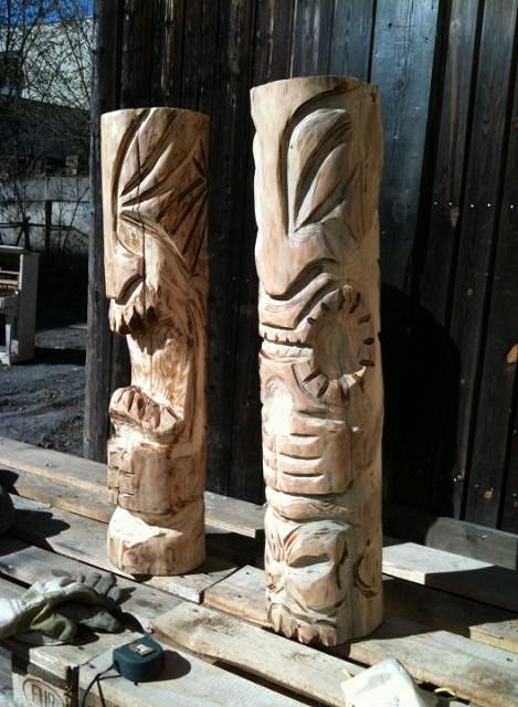 Here I have done some carving on the first tiki, the tikis