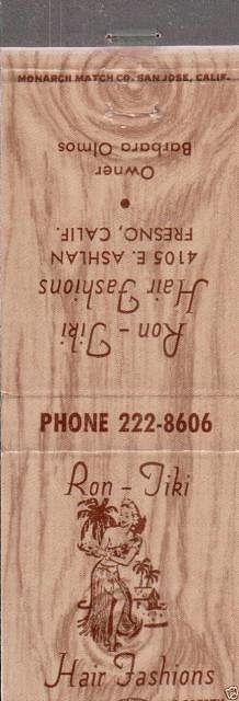 I just got a haircut and was reminded of this matchbook from Ron-Tiki Hair Fashions in Fresno.
