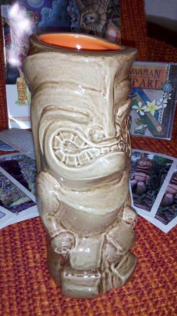 I got my package from MauiTiki and it is really something. The mug is a Kamalo AP # 5 with a beautiful orange interior and classic tan exterior. This is my first limited modern mug and it is great. I can't wait to give it a proper welcome. The package also included an awesome necklace, great postcards, a Christmas ornament, clip art and a cool local art magazine.