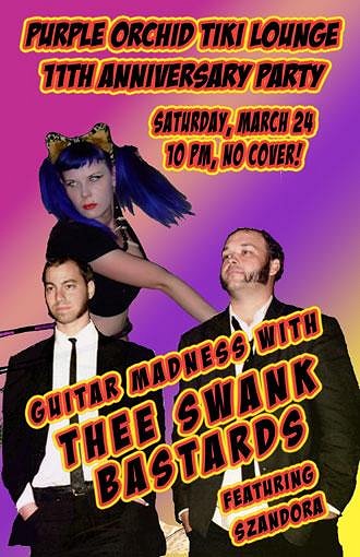With many thanks to our Tiki Ohana, we celebrate 11 years in the tiki bar business. To commemorate, on Saturday, March 24th we feature a night of music and mayhem with Thee Swank Bastards. Plus, Zombies, Bimbos and all your favorite adult libations. Fun starts at 10pm, but get there early for the best seats.