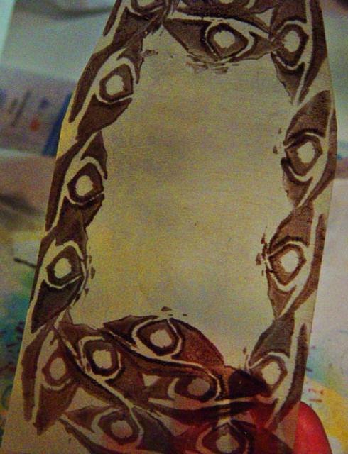 I make my own rubber stamps. I used a permanent ink and stamped a design around the edge.
