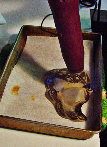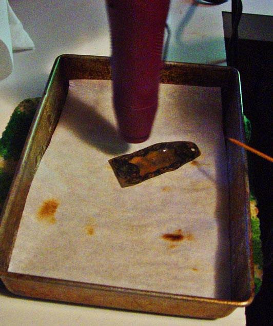 If you have never done this before it may seem a little crazy. You take a heat gun to the plastic. You can do it in the oven, but you don't have much control that way and I found I had more stuff to throw away after an oven trip. You may understand better with the next photo.