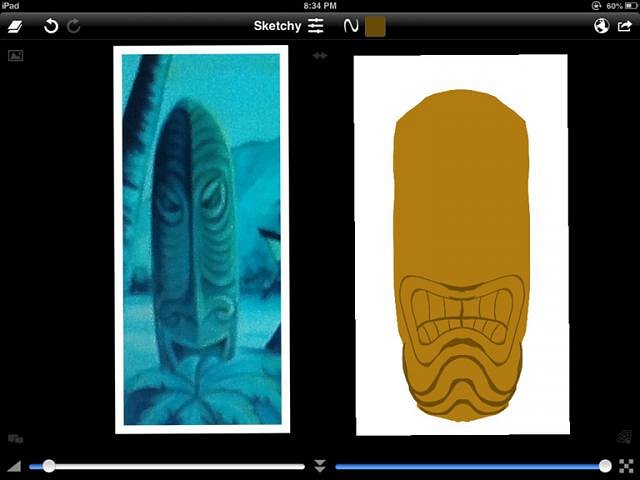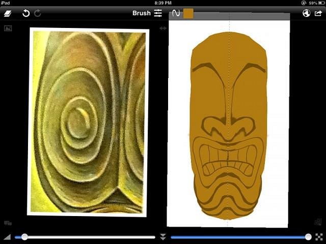 ALERT !!!! WARNING!!!! My next series of post in this thread will seem to go on forever. Being of advanced age I can only hope I live long enough to finish it. I don't usually go this long with a thread, but there seems to be some folks reading these post and I hate to disappoint an audience. I have not had a lot of feedback, but that is OK with me because I don't always answer questions so good. As always some of the very great artist here kindly checked in on what I was doing and left nice comments. A few other folks have come around as well. Of course those young kids who infect all forums on the web jumped in trying to bully me with silly immature attempts at insults. I'm old and life is too short to worry about young folks trying to get attention. I have been pretty careful here trying to not talk about my attitudes about modern tiki culture. They are different than most others here at TC. My goal is to present things that I have learned to others and let them decide if they are useful. I'm for sure no expert on anything but I try in my own way to contribute to the common good in society. And, TC is a society I feel it is worth contributing to. So I'm still here. Usually my ADD kicks in before I get this far in a thread, and I go looking for squirrels. But, what can I do, I'm still getting more than 100 hits a day. There must be some of you folks out there who like getting bored. It must help you sleep. I have one last series of Ipad painting post left in me. It will be a long one because I plan to try to cover all aspects of the Sketchclub interface and show as many painting tricks I can think of. OK, just more of the same …. Hope you can get something useful out of it. This is the tiki we will be working on ….....