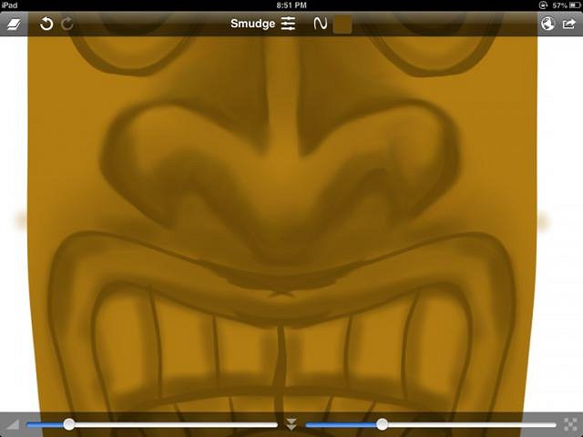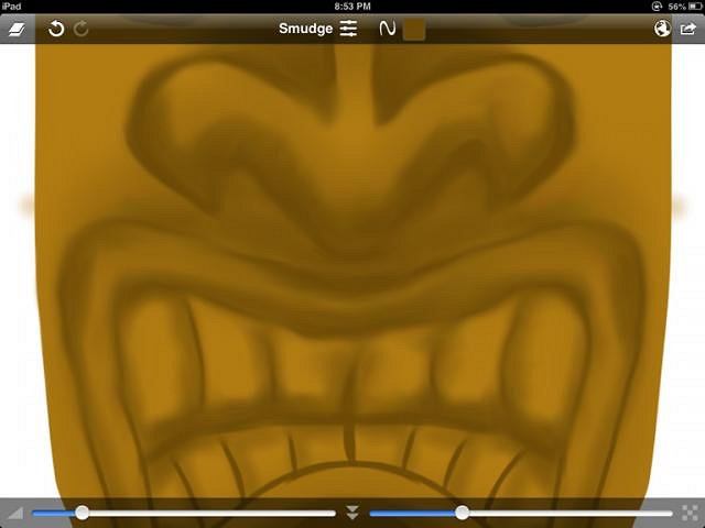 The whole tiki is now smudged. You can see that what started as rough cartoon has taken on a 3D look. It almost looks carved. That is really the basis for all pictorial art. The goal is to create the feeling of shape on a flat canvas.
