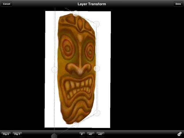 When you get to the Transform screen you see lots of stuff. I ain't got time to explain it all. The important thing at this time is that dotted line and little circles around the tiki.