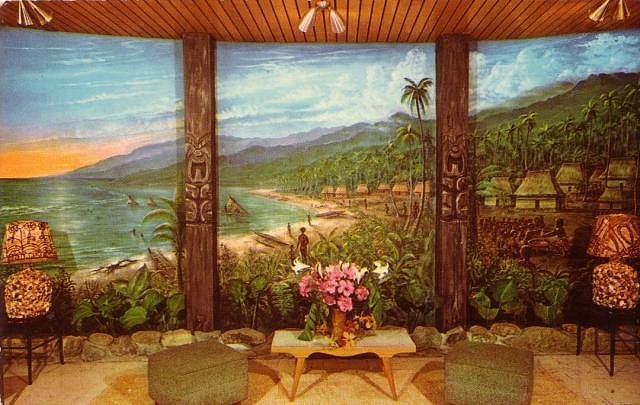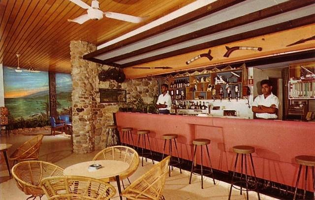 I recently found another postcard of the Reef Lodge. In it you can see the mural in the postcard shown above, along with the adjacent bar: