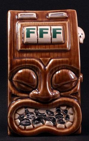 It's made for a bar that i'm sure no-one will disagree with as being a 'proper' tiki bar. It's designed to hold exotic/tropical drinks and it kinda has a tiki on it but it's really a slot machine with a face. Is it a tiki mug or isn't it?