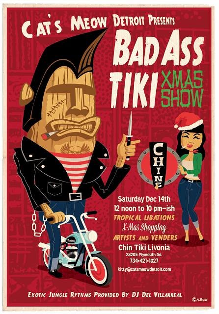 The annual Chin Tiki Livonia Christmas Show is back! Sponsored by The Cat's Meow we have over 12 vendors this year selling tiki - original art, vintage tiki, tiki carvings, mugs and so much more. Don't miss it, all our previous years vendors will be back with a few new ones this year. DJ Del Villarreal with exotic jungle tunes with a rockabilly twist. Tropical drinks and food provided by the Chin family. |