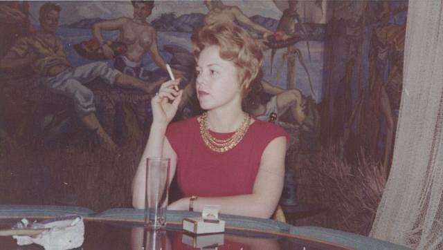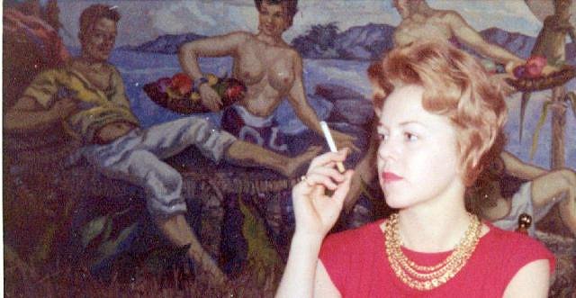 I'm always looking for old photos for painting inspiration and came across this months ago on the Bay and forgot to bid. I apologize if someone here got it. I loved the "Girl with faraway eyes" look...like she is waiting for someone or just found out here husband is cheating. Anyway the background caught my eye, and lo and behold a Frank Bower's mural. The bar looks like Vivian Laird's restaurant, but the mural does not match, Any ideas? The Leilani Hut? Thanks, OGR