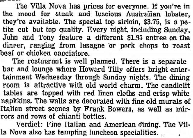 Bowers also painted murals for the Villa Nova restaurant.