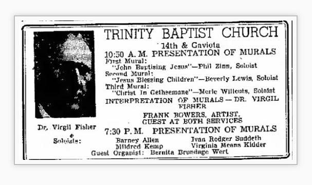 Nice to see you here again. Here is another article on the Frank Bowers opening for the church murals in 1949.