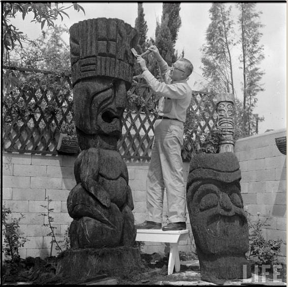 "Carving tiki sculpture for the Beverly Hilton"