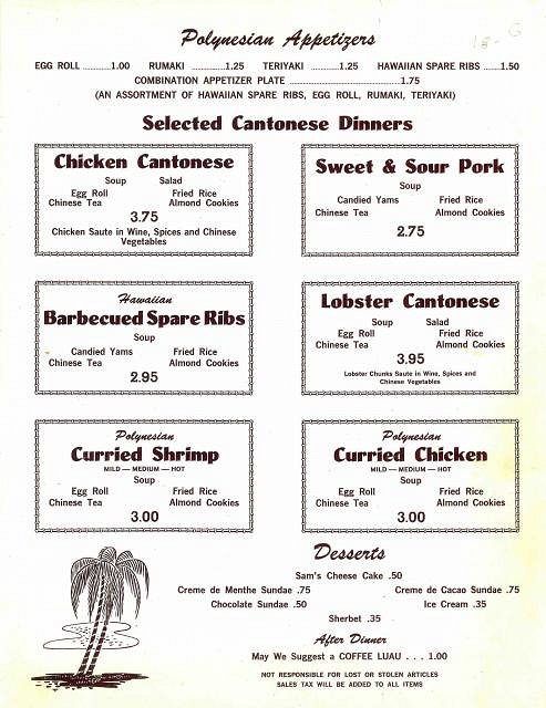 I picked up a menu at the recent paper show from The Luau restaurant located in La Jolla.