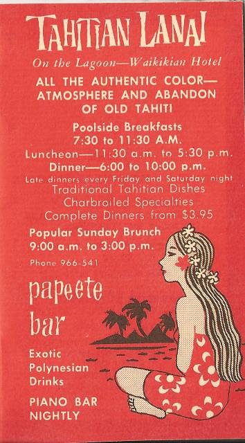 Spotted this breakfast menu from the Tahitian Lanai on ebay.