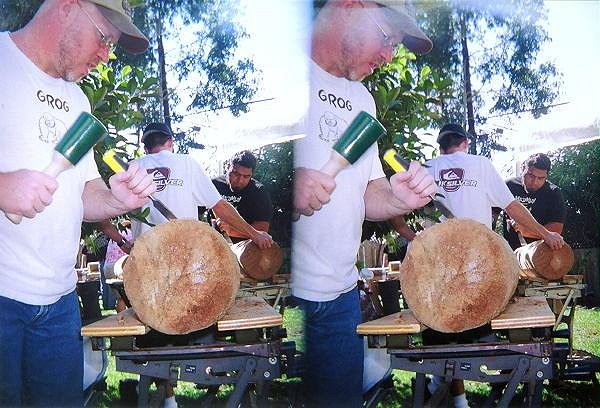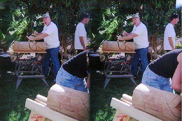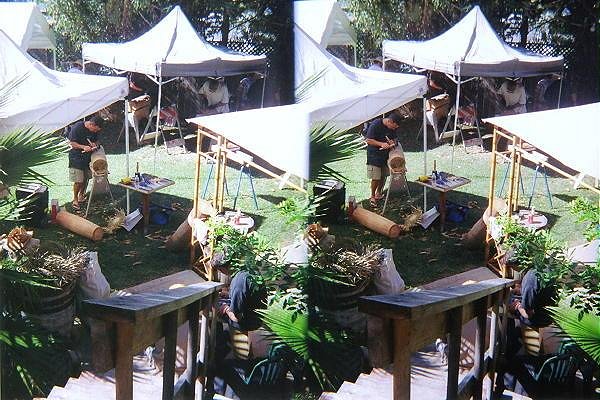 Aloha gang! You all saw that wierd camera I was carrying around all weekend long, right? Well, here's what I wuz takin': 3D pictures! To see 'em in 3D, you'll need a pair of those clear 3D glasses that we used to use in science class to look at the topography of geological formations. O.K., so ya don't happen to have any of those layin' around? Not to worry! You can also use the glasses that come in Harold Lloyd's first 3D Hollywood book, or the Peepshow 3D nudes pin-up book. And if you don't have either of those books (how can you live without 'em?), you can also cross your eyes and bring the images together just like those exasperating "hidden image" 3D pictures. These should be easier to see than those, tho. Anyway, here we go! The Center Of The Universe... Our Glorious Leaders... Da Kane's Karvin' Korner... Kirby finally wonders why he's been carving on his crotch all weekend... All props to Beachbum Berry, but there's a new "Grog Log" in town... Matt's way-too-awesome Tiki Room/Pirate's Den... Bosko, Diablo, and some shmuck who thinks he can carve a tiki... I hope you get to see these in 3D. It's kinda fuzzy on the computer screen, but they're really pretty cool. If you want me to post more, lemme know. I've got at least 7 more good ones. -haloz! [ Edited by: Tiki Lee's 2006-11-10 21:58 ] [ Edited by: Tiki Lee's 2006-11-18 20:30 ] [ Edited by: Tiki Lee's 2006-11-19 17:11 ] |