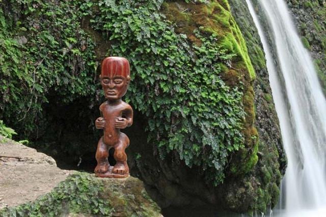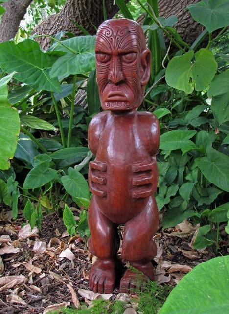 and here he is installed in his permanent home as a hazard on Koitiki's mini golf course.