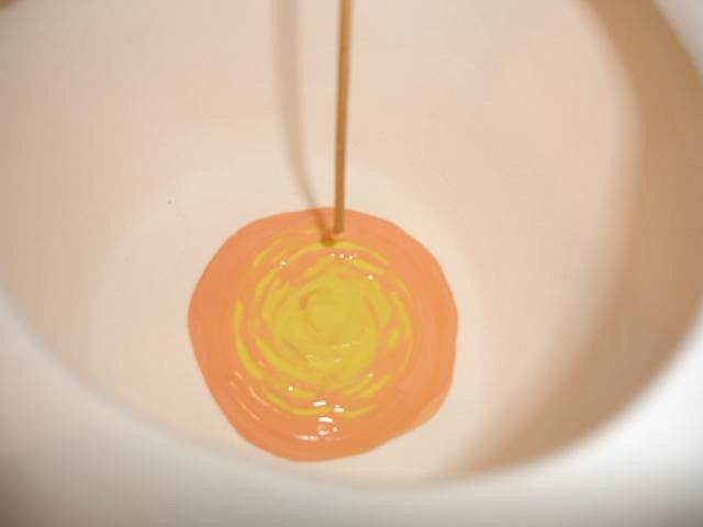 hang10tiki thank all of your for your notes that make this posting so fun. Progress Report: I glazed the inside with Firecracker Red. It's a spotted glaze and that's why there are so many chunks. They melt flat leaving brilliant colors. Next I did the last two layers on Psycho Tiki D's bowl. Where are you Duane? Next up was the bowl for hang10tiki. He requested an inside like the old Bumatay or Gecko bowls. This is something I've never tried before. I don't know if it will work here but I've tried. Three layers of yellow. Back to work. Cheers, Wendy |