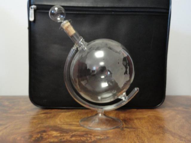 Scored this at a little thrift store full of overpriced yuppie women's clothes! It's a very cool globe decanter. I'm not sure the age, but I love it. |