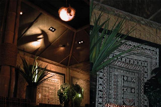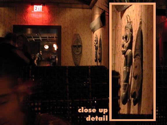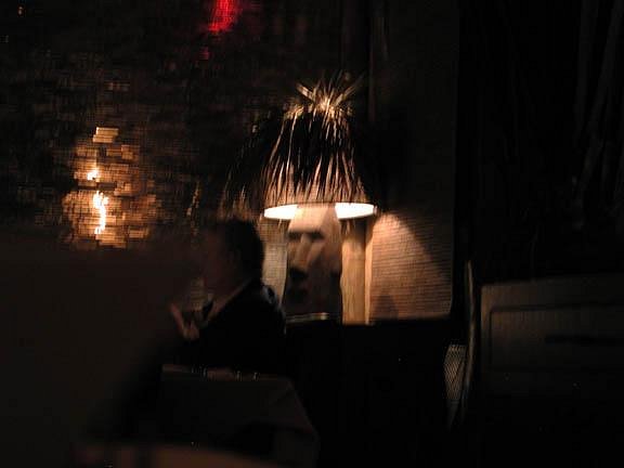 Thanks for the exhaustive report. No need for bondage, I will go some day, incognito, and I sure hope they'll be playin' my song (Denny) then! Cause as I said before, nothing better than Exotica music to provide the glue to cement all the various elements of a Polynesian pop environment together into a whole. And the more of these elements surface (Tapa, PNG carvings, Moai lamps), the better I feel about the place. Let's just say then that maybe it is not only a homage to Steve Crane's Luau, but also to his exotic Ports of Call restaurants (even if not on purpose). Now, for the lava rock waterfalls and tropical foliage.... :)