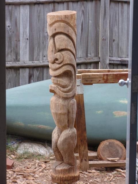 This was at one time a full bodied TIKI. Unfortunately I cut a little too thin around the legs and it broke in half :( So I ended up turning it into this... |