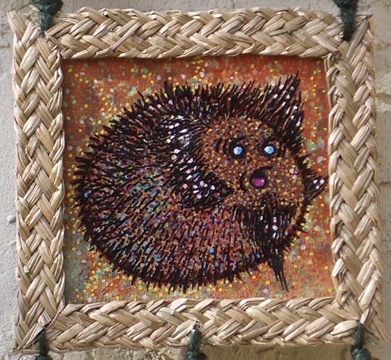 Comin' at ya now is a series of four small paintings I did just for fun and chuckles. These were all done with acrylic paints, paint pens on a heavy water color paper and put into a in a 5.5" x 7" woven frame.