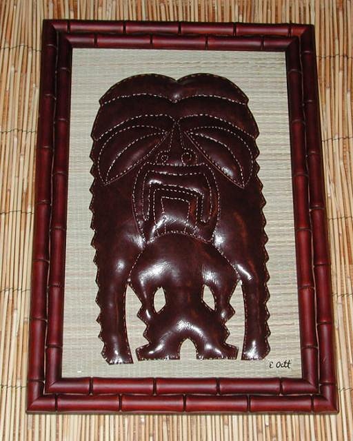 Aloha everybody! This is the first piece I completed this year, for the January mug swap. I was sending a package to Abstractiki, and I wanted to send David a something special to thank him for all the Urban Archaeology legwork he's been doing uncovering Stockton's tiki past. I painted him this 11x14 map of Stockton, highlighting all the tiki establishments on which he's uncovered information. The logos roughly approximate their establishment's locations in the city. The next project I tackled was a new pendant/card set for Valentine's Day. The set is based on a PNG tiki, since the faces of some of them are kinda heart shaped. The card measures 3.5 x 6.25 with an opening in the center for the pendant. The pendant is painted resin and measures 2" square. I continued the exotic tiki isle map series with this 11x14 map of Alameda. The last time Manuel and I were at Forbidden Island, we were talking to Suzanne about how Alameda is an island with tikis on it, and I scribbled down a quick drawing of this idea. I styled the tiki after the FI tiki, and put an "X" on the map where the bar is located! I continued the vinyl wall hanging tiki series: I also made two 15" diameter circular tiki heads, a Marq and a Ku: And I now have a tiki drum trilogy with the completion of these two 11x 14 acrylic on watercolor paper paintings: Bongo Beatdown Beaky Tikis, 11x14 acrylic on watercolor paper This 11x14 piece was inspired by a song that was introduced to me by Tikiyaki's own Marty Lush, Hawaiian Cha Cha Cha: I also made some 8x10 prints of the Tiki Torch Song Trilogy paintings, and the Maori Racer painting. I hand painted tapa patterns on the frames. I had wanted to do a Stockton Islander painting for some time, and receiving some Islander bamboo from Abstractiki was the impetus to complete this piece. Well, that's it fer now, hope to be posting again soon! [ Edited by: tobunga 2010-02-02 20:25 ] |