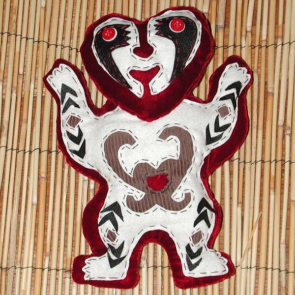 Mahalo Liz! So glad you like my work! Hey, see if you can get your co-workers to buy some of it! Hee hee! So in keeping with my trying to post at least once a month, here goes for February... short month, so I didn't finish a lot of stuff... You may have seen by now the tiki I made out of Cheetos Snacks... I posted it in a thread about the event on the 3rd St. Promenade in Santa Monica where it was on display. The videos with the Cheetos Tiki I did have been posted, check 'em out here: For Valentines Day, I made Manuel a card and plush tiki. I was toying with the idea to make a duk duk valentine, and did some drawings, but I decided that duk duks at New Year's was a good close to that motif. I then started thinking PNG... So I made a Plush PNG Valentine and card. Here's the packaging and envelope: Here's the card: The plush tiki doll is 9" tall and has a body of red velvet, with vinyl, corduroy, and flannel details. And then, near the end of the month, it was Kirby's birthday! I found out only hours before heading out to the Rumpus Room that week, but I had enough time to whip up this black paper card of the Rumpus Room tiki that Kirby carved. Well, that's it! Not much this time around, but I'm workin' on it! Mahalo fer lookin'! [ Edited by: tobunga 2010-04-07 17:59 ] |