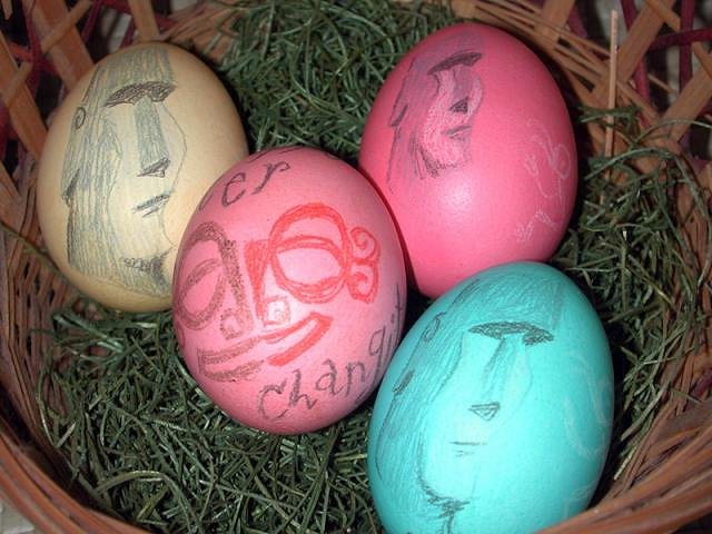 Ok, so my posting at least once a month plan isn't going so well, since I completely missed March, but only by a few days! I actual worked on this a while ago, but it was sort of under wraps... the Tikiyaki Orchestra will be coming out with a new DVD of a live performance at the Mayflower Club in North Hollywood. Scott Mabbutt (Joe Banks) directed, and gave me to OK to post pix of the cover art... I saw some of the footage, it looks FANTASTIC! Can't wait for the release! Then, I was among several artists asked by Mark and Maggie of Velvet Glass fame to contribute a piece for the raffle to benefit the Hope Animal Shelter that will be held at the Relight the Night event at the Kon Tiki in Tucson on April 10th. I did an 11x14 black paper drawing of the Kon Tiki sign in all it's fired up glory. The Kon TIki liked it so much, it's their new avatar on Facebook! Sweet! Speaking of raffle, I'm holding one of my own, to raise funds for the trip out to Tucson, and to Tiki Caliente... There are 50 tickets, and each ticket consists of a 4"x 6" numbered, hand-rubbed linoblock print of the map (suitable for framing!) and a 2" resin tangaroa face pendant. Tickets are 10.00 each. Here's the original thread: Also, another project that I had to wait to discuss is a painting I did for iTiki... They wanted to give away some posters of original art featuring their cool iTiki iPhone cases. I PMed TerenceG (one of the guys behind the project,) with a suggestion about how he could interest artists through his post here on TC looking for artwork, and I ended up getting the gig! Their idea was to have a human-sized iTiki and a pin-up type girl in a tiki bar surrounded by memorabilia from classic tiki establishments. I did a drawing that he liked, and went from there to the painting, 11x14, acrylic on canvas. Some of the imagery changed around during the course of painting it, as you can see from these progress images. The finished piece: Here's a link to the website: We went to San Diego on the 20th for Manuel's mom's birthday. We tikified the bar in their den, and I created a couple of 6' tall foamboard tikis to help decorate the den. I also created a few menus of the drinks we've created using our hand-crafted syrups, like ginger, black pepper, lemongrass, hibiscus and cardamom/cinnamon. The menus incorporated an updated version of our Changitos logo. (Changito being short for Changito Amorcito [little love monkey], our nickname for each other... Changitos being the name of our "home tiki bar"). Then it was time to prep for the Tonga Hut parking lot sale! Continuing my obsession with the Stockton Islander, I created an 8x10 frame made from Islander bamboo that I acquired from Abstract tiki and used it for a vinyl Bumatay Islander mug. I made an 11" vinyl plush Marquesan Tiki... unlike most the other plush tiki dolls I've created, this one stands! I also made some "regular" plush marq tikis. That is, plush tikis made from corduroy, not vinyl. I had an idea kicking around in my head for almost a year now, a Moai Bob... I did a drawing months ago, but didn't know what to do with the idea until I then did an 11x14 painting of Moai Bob. Marty Lush asked me to do some artwork for his upcoming Lush Goes Latin show at Tonga Hut on May 1st. Check out the original link to his show here: I was among several artists asked by Baby Doe to contribute a piece to the Keep A Breast project, and I received a plaster cast of "boobies" a couple weeks a go. I wasn't sure what to do, then inspiration struck. I hope we're allowed to turn 'em this way... Then it was Easter, and I made some actual Easter Island Eggs in a basket for Manuel. Not actually from Easter Island, but actual hard boiled eggs, not the papier-mâché and paint versions I've done before. Three resemble those, and one says "Happy Easter Changito!" with a marq tiki face, reminiscent of our Changitos logo. (Changito being short for Changito Amorcito [little love monkey], our nickname for each other). So the last things I'll finish up before heading out to the Kon Tiki Relight the Night event is once again, my Islander obsession... Oh, also, videos with the Cheetos Tiki I did have been posted, check 'em out here: Thanks fer lookin'! |