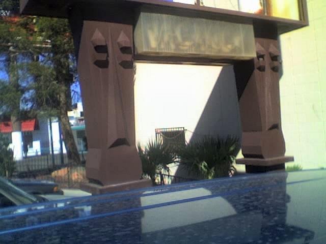 Coming back to our room at the Bella Royale from Wangs (Palm Springs) I was feeling Pretty good cuz I was able to snag two of their green fu man chu type mugs.Thought I saw a tiki hiding among the palms; |
