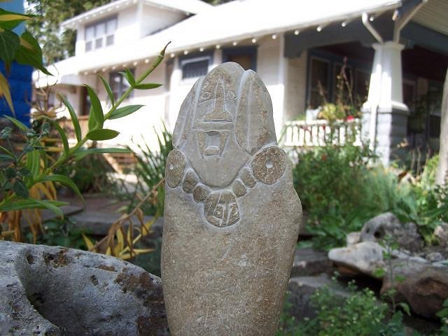 thanks tama-i found this site through my studies of jade carvers-i decided you were the carver best developing the tiki motif and your work led me here.maori culture in general has been a large influence on how i choose to live.my house is covered in brightly painted wooden sculptures. yes i am numbakulla and about 200 other personnaes i adopt during my various art endevors. i feel guilty masquerading as a carver when i'm such a newbie. i spent 40 years so far making jewelry, and have shown over 2000 of my paintings. i've collected rocks for over 50 years. since i live in limestone i've collected, stacked and carved over 2 million pounds-organized into gardens waterfalls and ponds. i need to photograph my feeble attempts at hard stone carving - but here are some pics of my limestone carvings