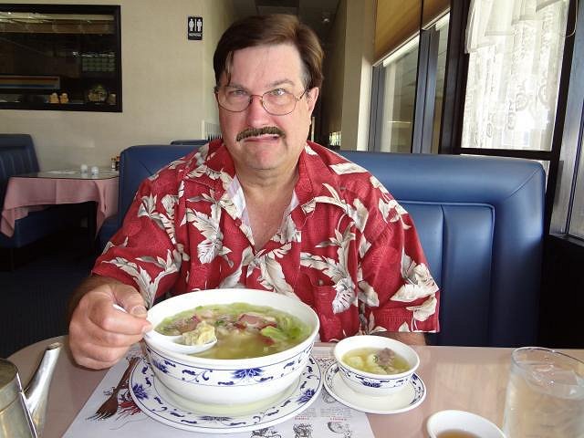 GROG he looks good that way. hang10tiki that mug is from Dan's Tiki Lounge out in the garage. It's for drinks that must be sipped. Hale Tiki Dan is fair game go for it/him. I yell Dan you've been photo-shopped and he comes running in to see. I love hearing him laugh. Presenting: Dan Manchu 1997 when I met him and fell in love. littlegiles I loved that toy. My mom kept one in the car for long trips. Thank you a whole bunch of times. When I was in high school everyone said I looked like Sally Fields. Now I have the comment she was looking for at the Oscars. You made my day. Atomic Chick I'm so sorry I gave up and painted your mug in enamel. But guess what, he's free and I'll bring him to you at Caliente. He's the mug that fought to be himself, a mess, and won. Tiki Ano yesterday was cool and overcast. A perfect time for hot chocolate. Dan made me a cup from your mix. Rich, creamy and yummy. Thank you again.